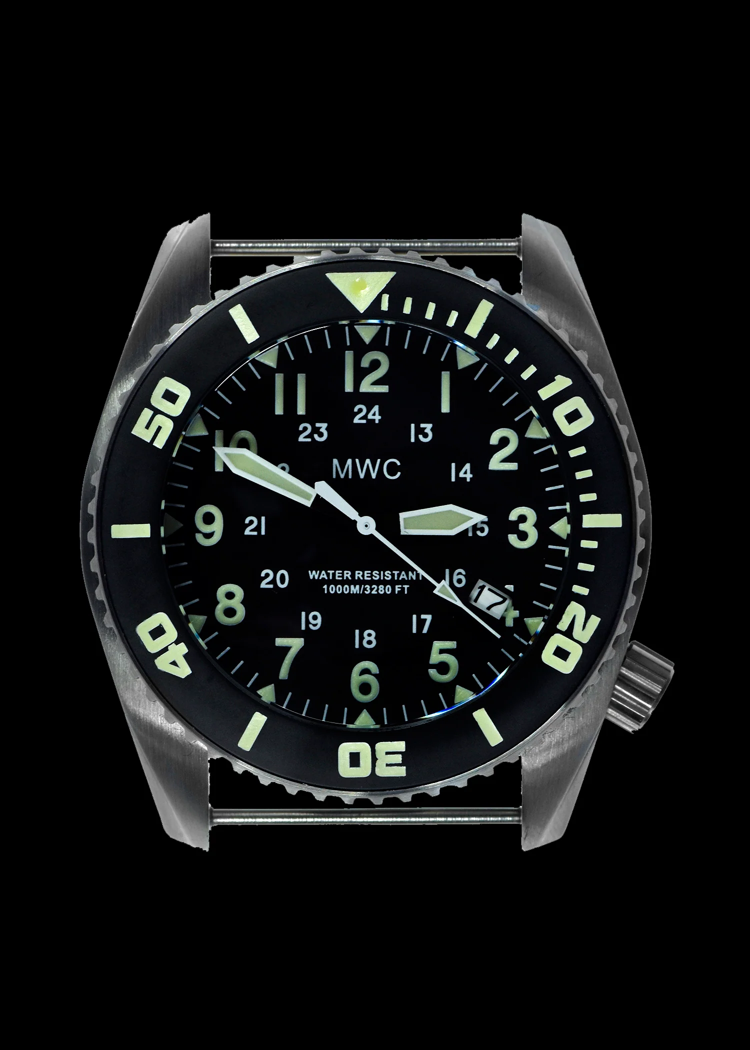 The MWC "Depthmaster" Military Diver models are MWC's latest heavy-duty range, built to withstand extreme conditions. These watches are exceptionally robust, featuring a sapphire crystal and a 100atm water resistance rating, making them suitable for diving with mixed gases at extreme depths. They also come with a wider 24mm strap (most military diver watches use a 20mm strap) and a non-scratch ceramic bezel that is easier to grip in extreme cold. These watches are specifically designed for professional divers operating under very challenging conditions.
