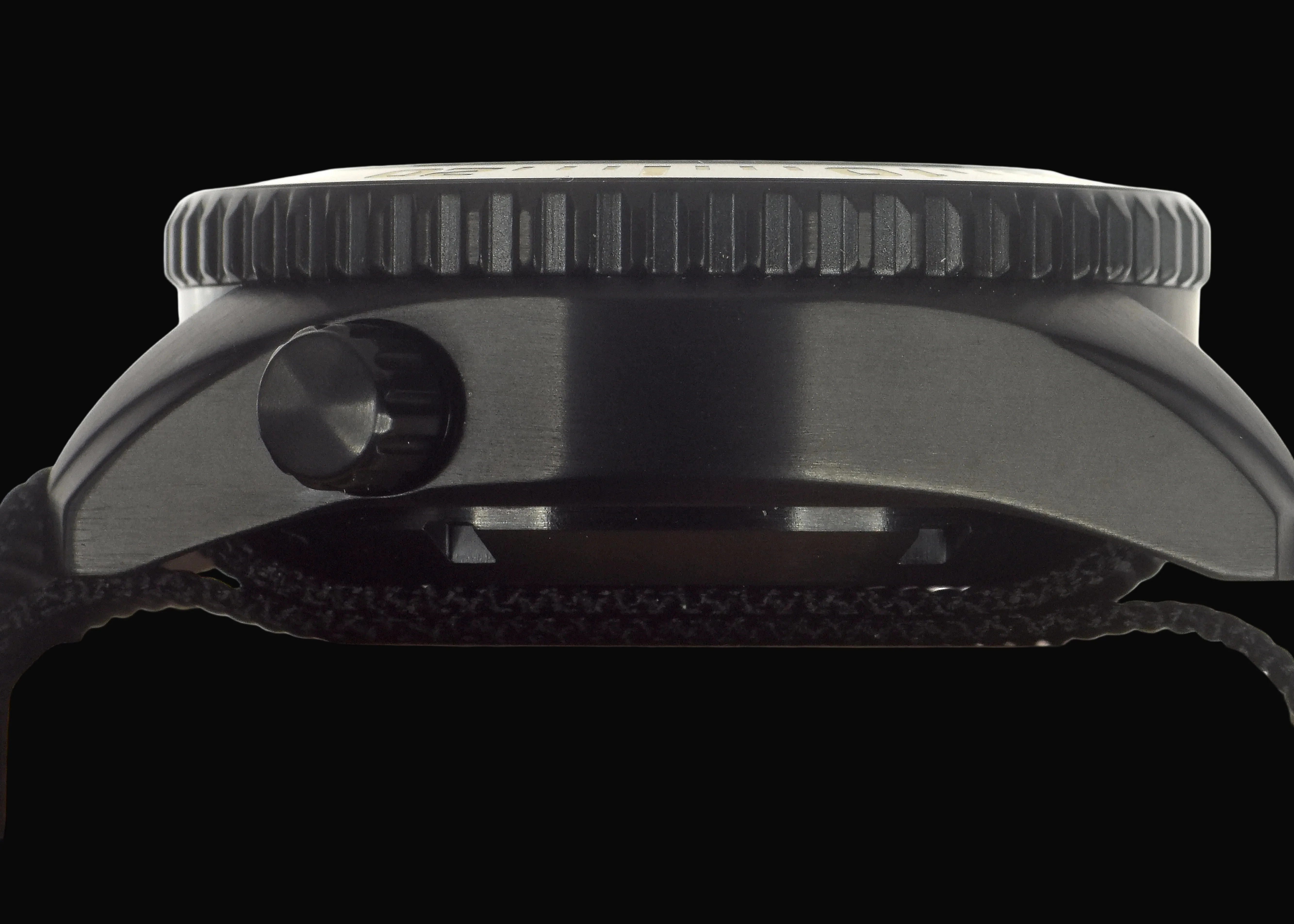 The special covert matte black non-reflective PVD finish used for this watch is often specified in military contracts for special forces units, anti-terrorist units, and various covert operations. The PVD process creates a black finish on the steel that is vastly superior to painted finishes, which can easily fade or rub off. This PVD process means that the color of the steel is altered at a molecular level, ensuring it does not deteriorate even during heavy usage. However, the finish can be compromised if the case is severely damaged.