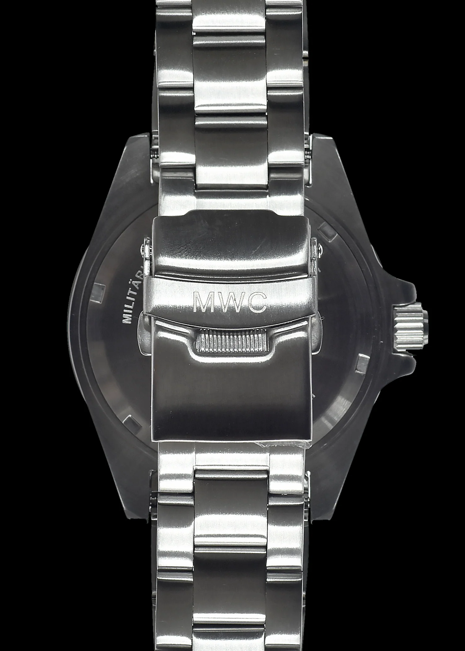 MWC GMT (Dual Time Zone) Stainless Steel Military Watch with Sapphire Crystal and Ceramic Bezel on a Matching Stainless Steel Bracelet